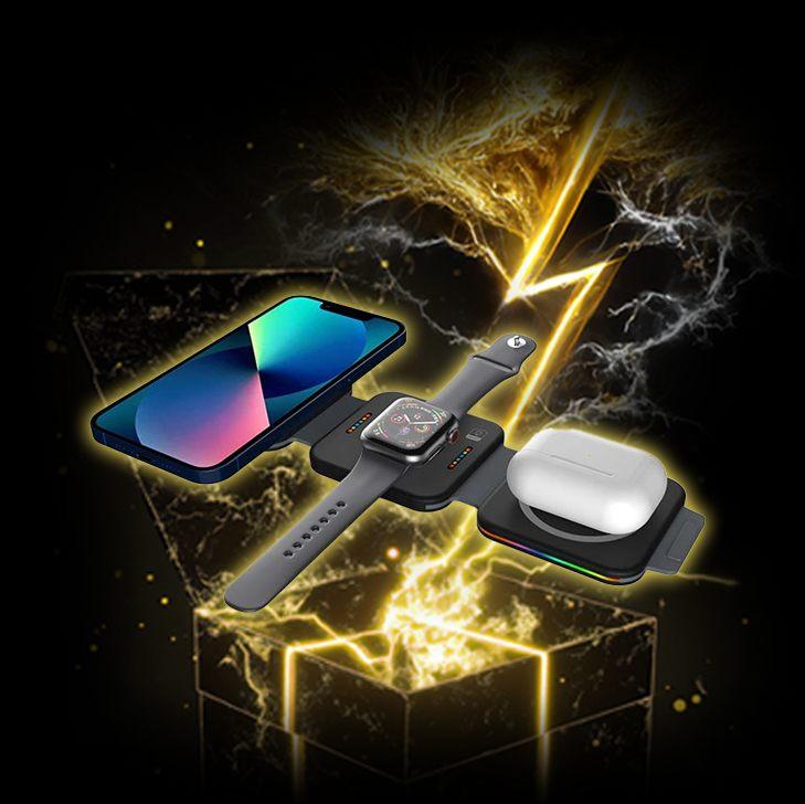 Now this is cool! Folds right up in my pocket and can wirelessly change for my phone, watch, and earbuds. It's an all-in-one charging pocket rocket that, for a wireless charger, charges damn quickly! Getting another for my office now!
