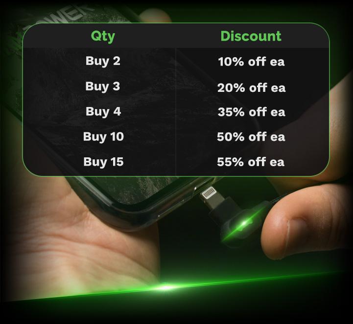Far from your everyday cord, the Titan Cable delivers lightning fast charging with it's thicker internal wires, higher 2.4A amperage capabilities and highly conductive materials.